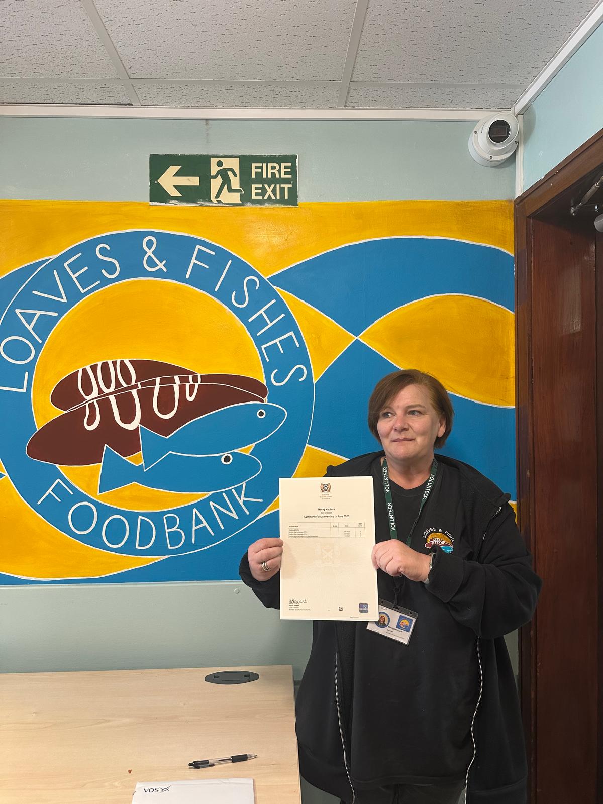 Below is a selection of images showing our Chair Lesely out and about in the community raising awareness and encouraging support for Loaves and Fishes.
